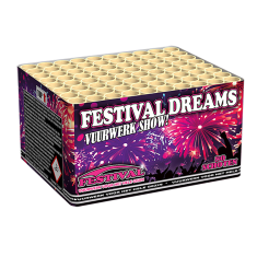 Maak kennis met de knallende nieuwkomer in de geliefde Festival Line: Festival Dreams! Deze 80-schots cake levert een non-stop spektakel vol kleur, tempo en variatie. Elke salvo verrast met felle kleuren, snelle overgangen en indrukwekkende effecten – perfect voor een dromerig, maar explosief einde van de avond.