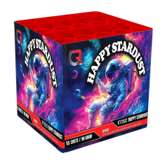 Klein van formaat, maar groots in uitstraling. HAPPY STARDUST EEN zorgt voor een sprankelende sfeer en is ideaal als opstarter of kleurrijke toevoeging aan je vuurwerkshow. -