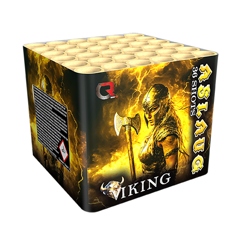 Maak kennis met ASLAUG, de trotse nieuwkomer in de robuuste Viking-lijn van China Red! Deze 36-schots cake combineert kracht en elegantie, en verrast met een mooi, uniek effect dat zich pas in de lucht volledig onthult. Stoer van buiten, verfijnd van binnen – ASLAUG is perfect voor wie houdt van vuurwerk met een twist. Compact, stijlvol en vol karakter. Een waardige toevoeging aan de Viking-serie!