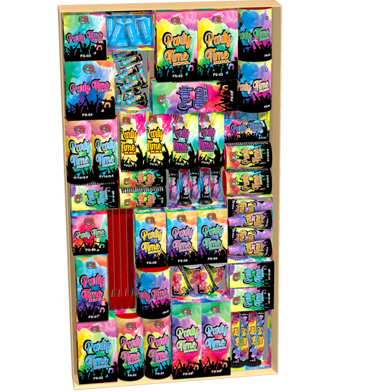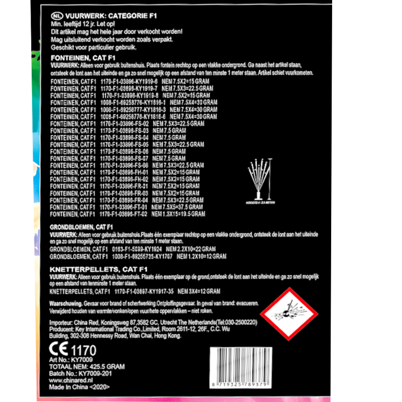 Super goed gevuld Category F1 assortiment, bomvol met leuke fonteinen, grondbloemen en knetterspul.
