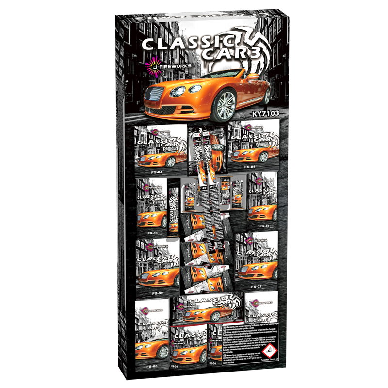 Fonteinpakket met 10 flitstabletten, 5 kokerfonteinen, 10 boxfonteinen, 15 knetterfonteinen, 6 kegelfonteinen, 2 handfonteinen met verschillende vuurspuwende effecten en flikkerende sterren.